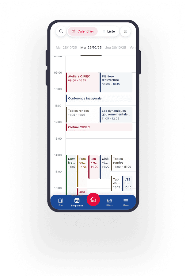 Ajoutez votre programme, intervenants et horaires pour un agenda clair et consultable en temps réel.